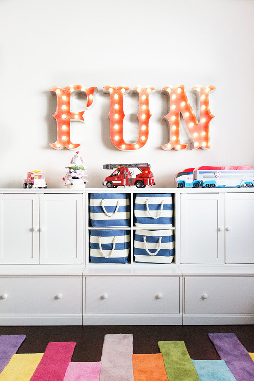 Oyuncakların fazlalığı çoğu zaman evi dağınık gösteren bir etken. Fakat eğlenceli depolama alanlarıyla çocuğunuzla beraber oyuncak toplamak eğlenceli hale gelebilir.